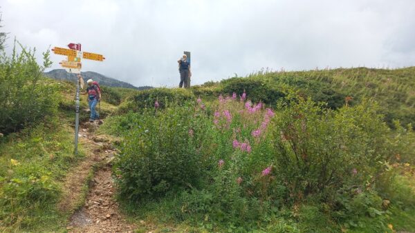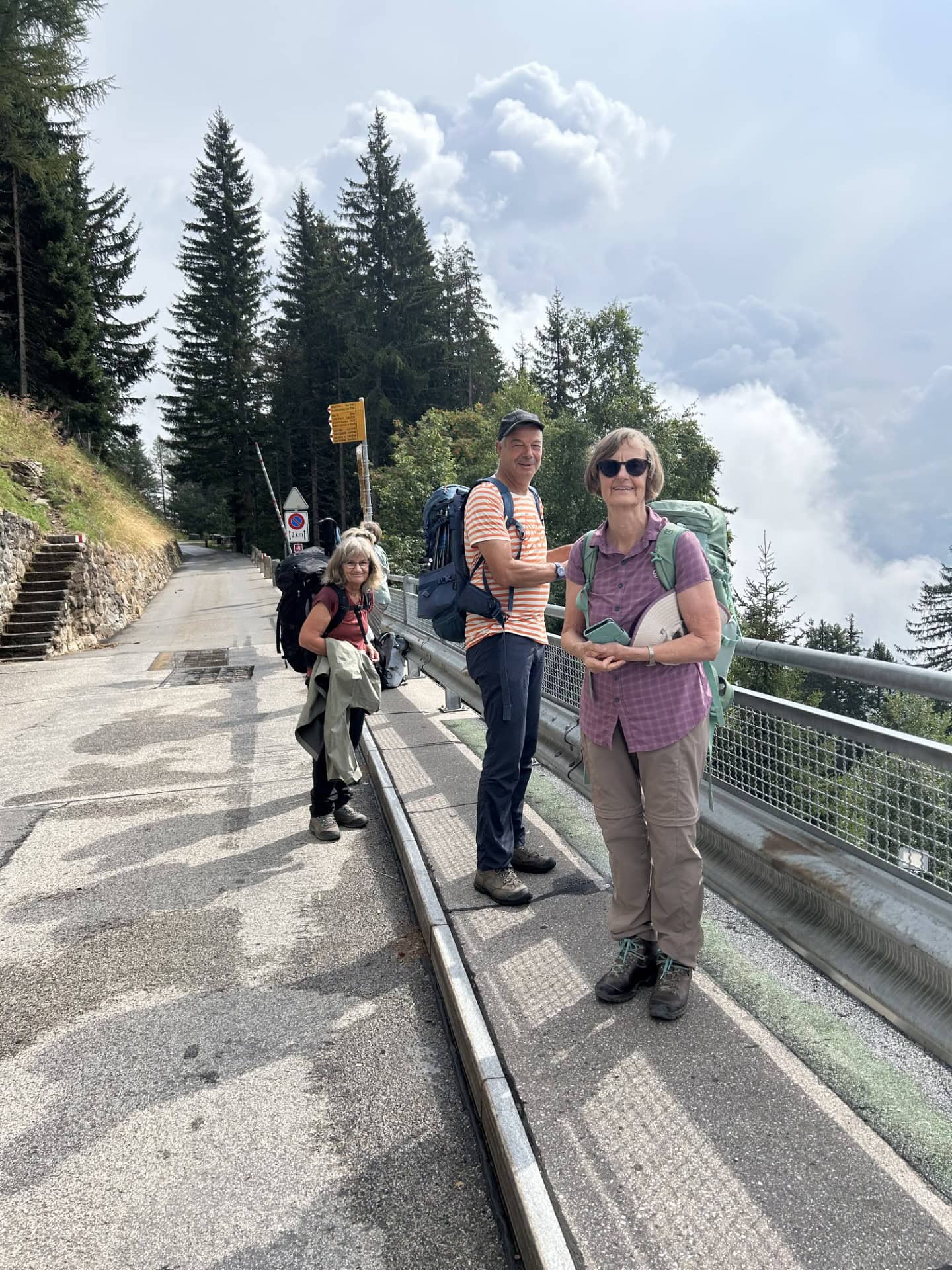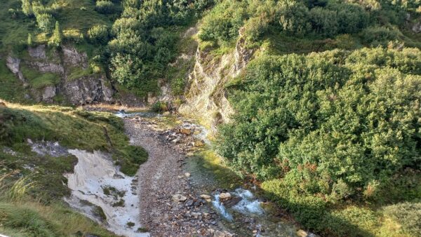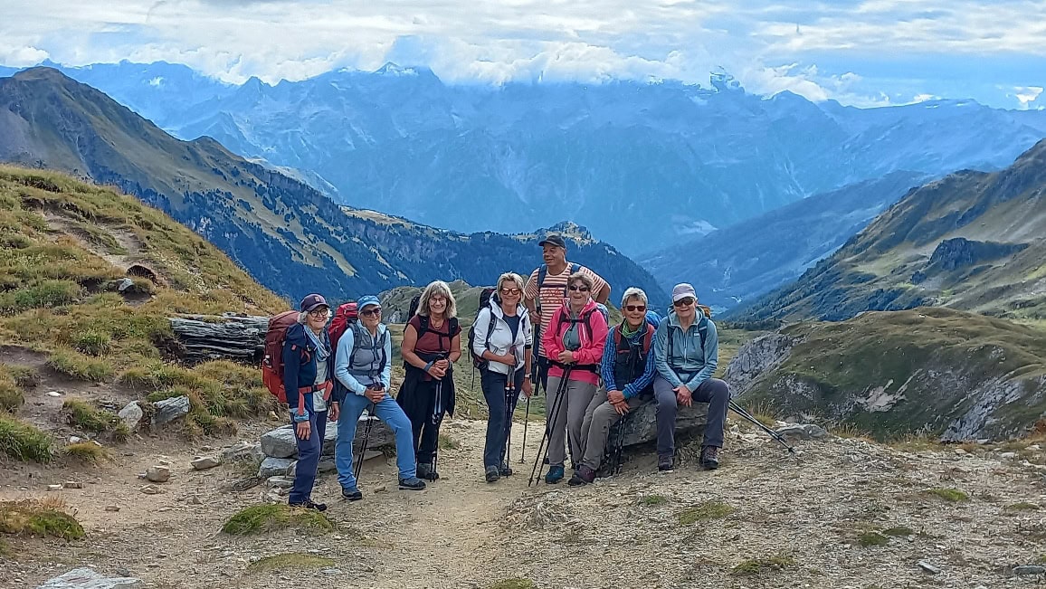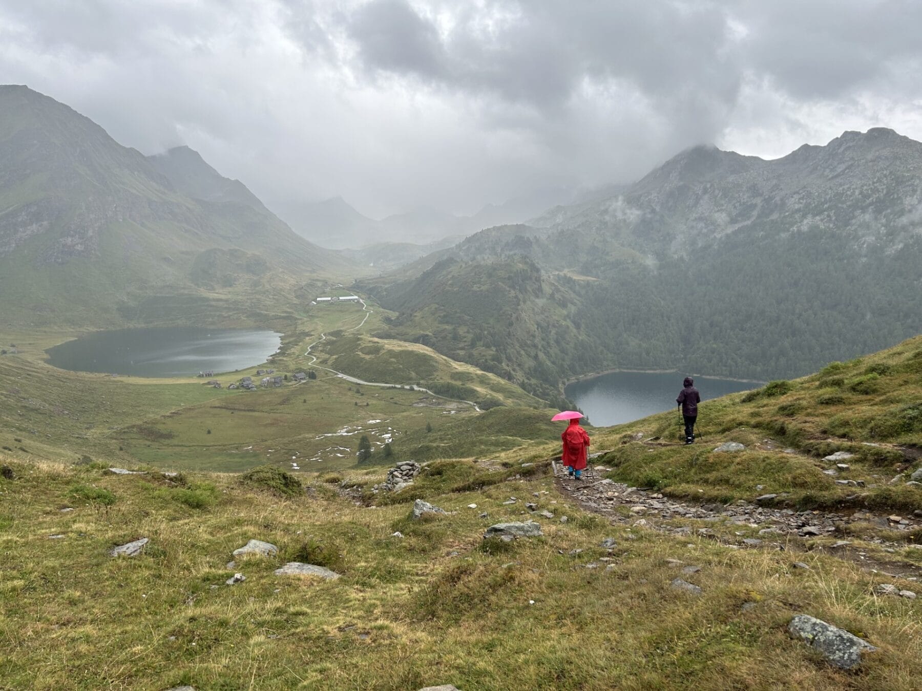 Am nächsten Morgen schien sogar die Sonne zwischen den Wolken und wir starteten mit einem bequemen Weg zum Passo delle Columbe. Auch dort gab es wieder einen See, den Lago di Campanitt, mit Fotohalt. Da sich die grauen Wolken näherten, machten wir nur einen kurzen Halt und wanderten über einen neu gemachten zickzack-Weg hinunter in die weite Hochebene der Piano dei Canali. Zum Teil wirkte der Weg wie mit Zucker bestreut, da der zuckermässige Piorasand mit dem Regen auf dem Weg verteilt war. Als wir unten in der Hochebene eine Pause machten setzte der Regen sachte wieder ein. Glücklicherweise dauerte er nicht lange und beim Mittagshalt auf der Alpe Gana konnten wir wieder etwas Sonne geniessen. Der letzte Wegteil führte uns auf einem Sentiero naturalistico Lucomagno durch ein Naturschutzgebiet, mit einigen grossen Dolinen, die zum Teil sehr tief waren. Das letzte Stück von der Alpe Croce zum Lukmanierpass wanderten wir nochmals im Regen. Glücklich kamen wir auf dem Lukmanierpass an und konnten noch im Restaurant ein Zvieri geniessen, bevor wir mit dem Bus Richtung Biasca-Bellinzona die Heimreise antraten.