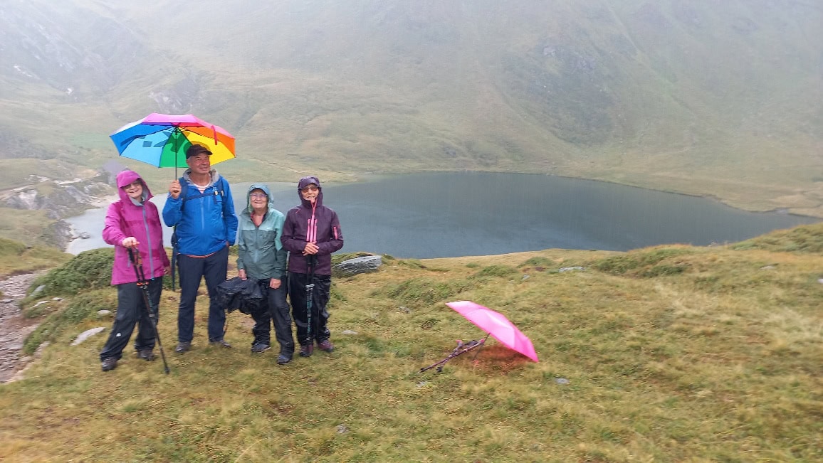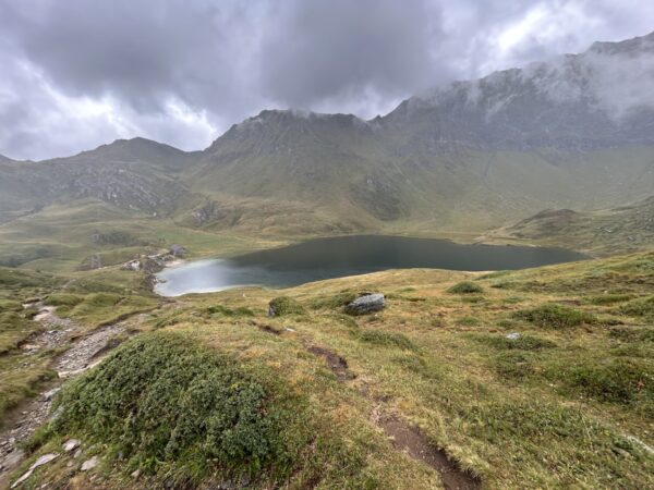 Der Wetterbericht meldetet zwar zeitweise Regen, aber ich entschied mich, die Tour trotzdem durchzuführen mit rollender Planung. Zu neunt kamen wir mit der Piorabergbahn an. Es schien sogar etwas Sonne und wir brachen hoffnungsvoll auf, um den schönen Wanderweg auf der rechten Seeseite zu beschreiten. Der Ritomsee zeigte sich mit verschiedenen Farben von schwarz-grau bis türkis-blau und wir wanderten gerne durch den schönen Lärchen- und Arvenwald. Die Mittagspause machten wir auf der Alpe Cadagna in der Nähe des neuen Ristoro Taneda und als der Regen einsetzte wechselten wir schnell ins Ristoro, wo wir ein feines Zvieri genossen. Als der Regen wieder hörte, machten wir uns zu 5. auf, um zum Lago Tom zu wandern. Wir kamen nur bis zum Pass davor auf der Alpe Tom, von wo aus wir auf den See blicken konnten, da der Regen wieder eingesetzte. Wir bestaunten auch die Mulden mit dem feinen zuckermässigen Piorasand die rund um den See aber auch in der ganzen Gegend auftraten. Nach einem Fotohalt kehrten wir wieder um, und wanderten um den Cadagnosee, der dauerhaft 3 unmischbare Schichten aufweist und seit ca. 30 Jahren erforscht wird. Schliesslich kamen wir zur Cadagnohütte. Dort verbrachten wir einen gemütlichen Abend mit feinem Essen, Spielen und reden und waren froh, im Trockenen zu sein, da es draussen heftig regnete.