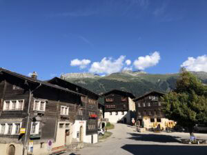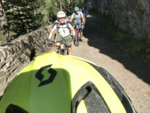Wir reisen per ÖV vom Baselbiet ins Wallis nach Lax im Goms. Bereits gegen 9 Uhr stehen alle startklar und gut gelaunt vor dem Bahnhof Lax. Auch Walti, der im Wallis weilt, ist zu uns gestossen. Das Wetter macht ebenfalls mit. Famos, zu sechst legen wir nun los. Zum Aufwärmen zuerst die Teerstrasse hinauf nach Ernen (1200m). Schon bald folgen wir der Naturstrasse entlang der Binna mit ihrer imposanten Schlucht. Bei Ze Binne queren wir den Fluss und pedalen in moderater Steigung batterieschonend durch das schöne Lengtal nach Heiligkreuz (1460m).