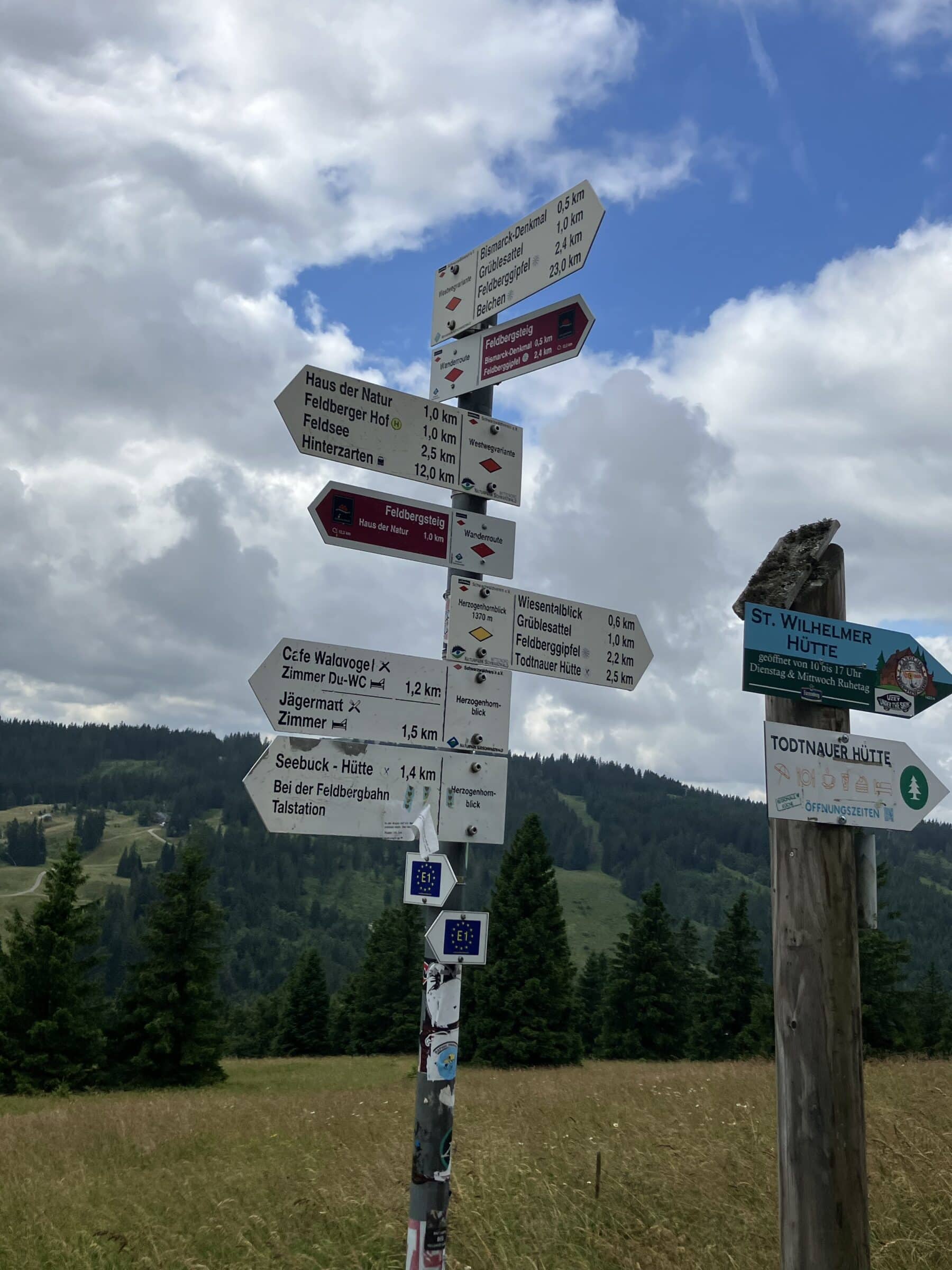 Nach einer zweistündigen Bahn- und Busfahrt von Basel auf den Feldberg, war ein Kaffeehalt um diese Zeit noch nicht möglich, da die Souvenierläden und Restaurants erst um 10.00h aufmachen, also WC-Halt beim Sessellift.