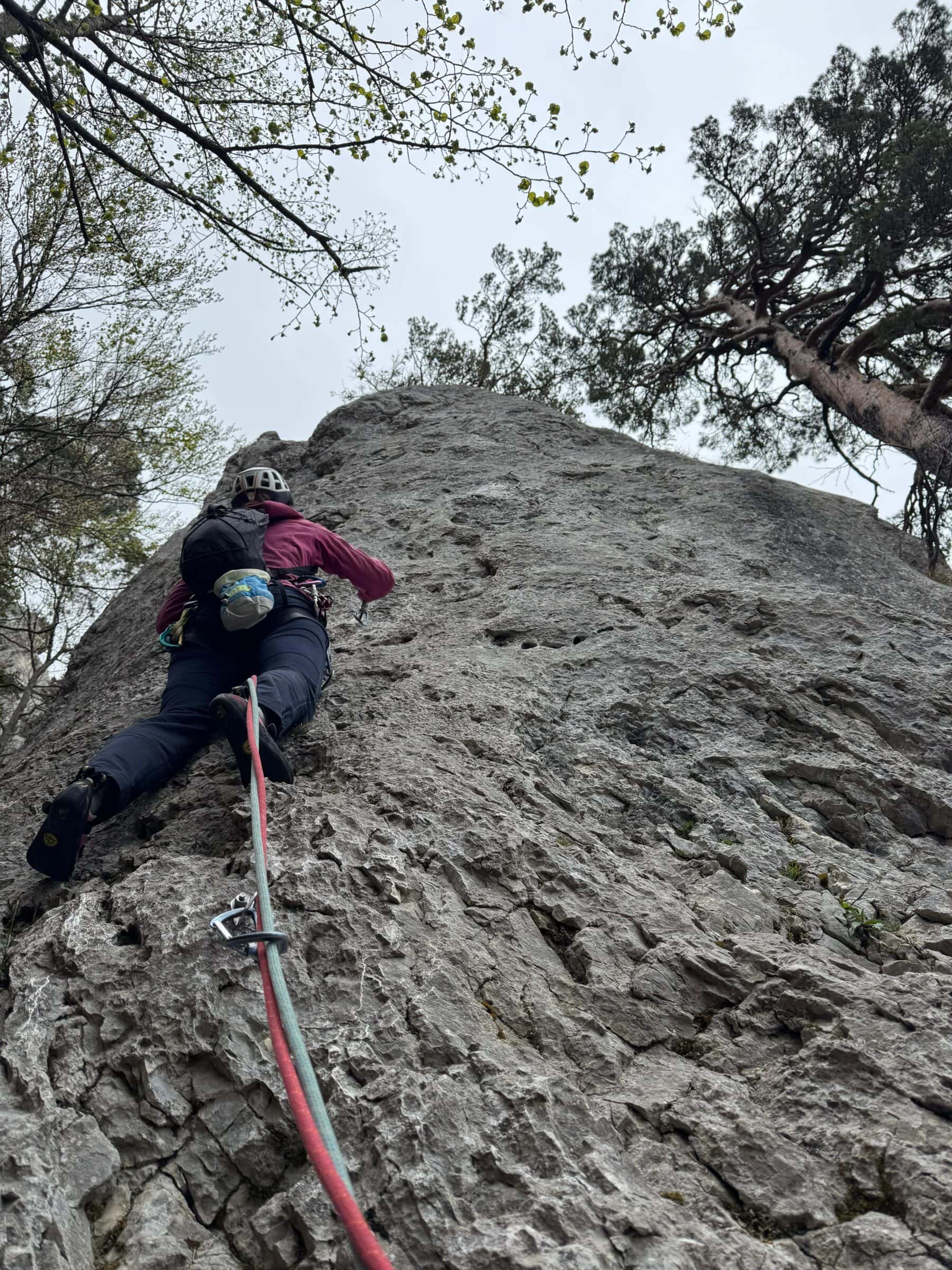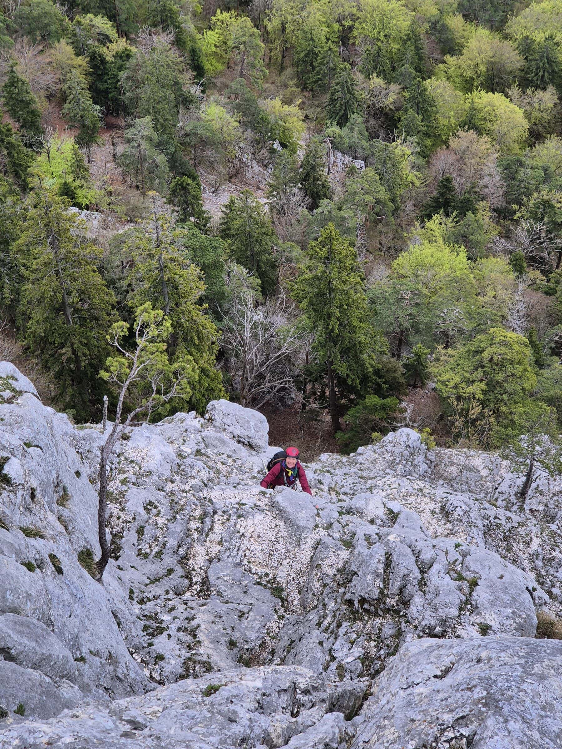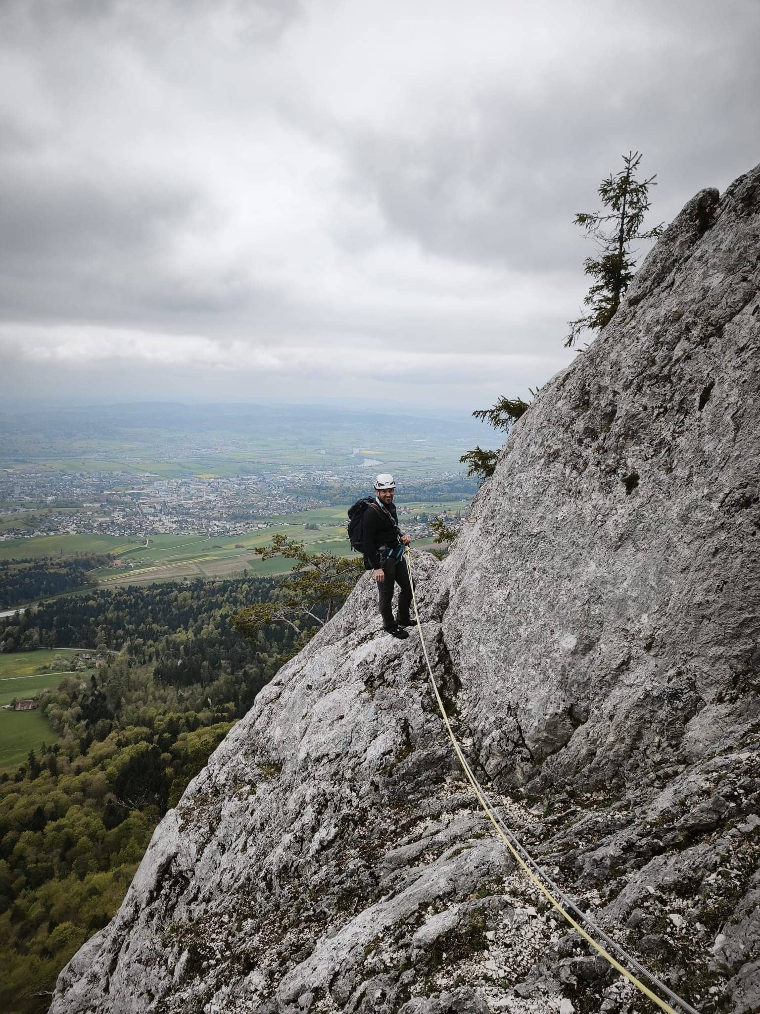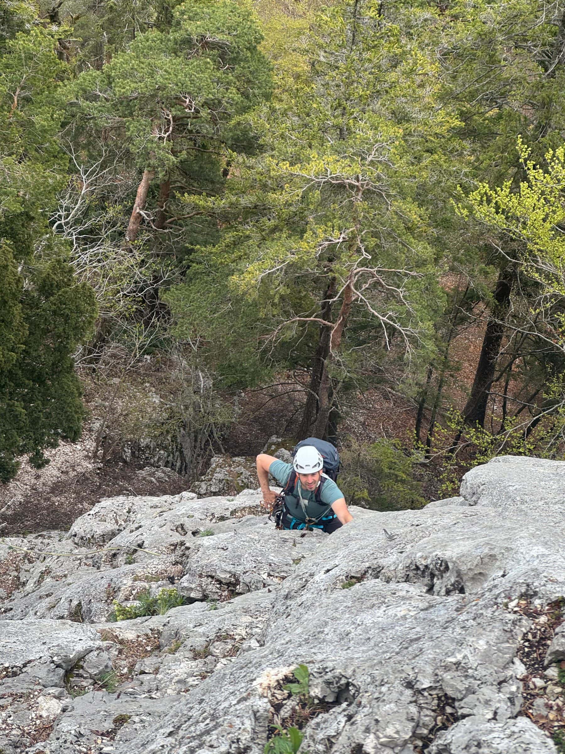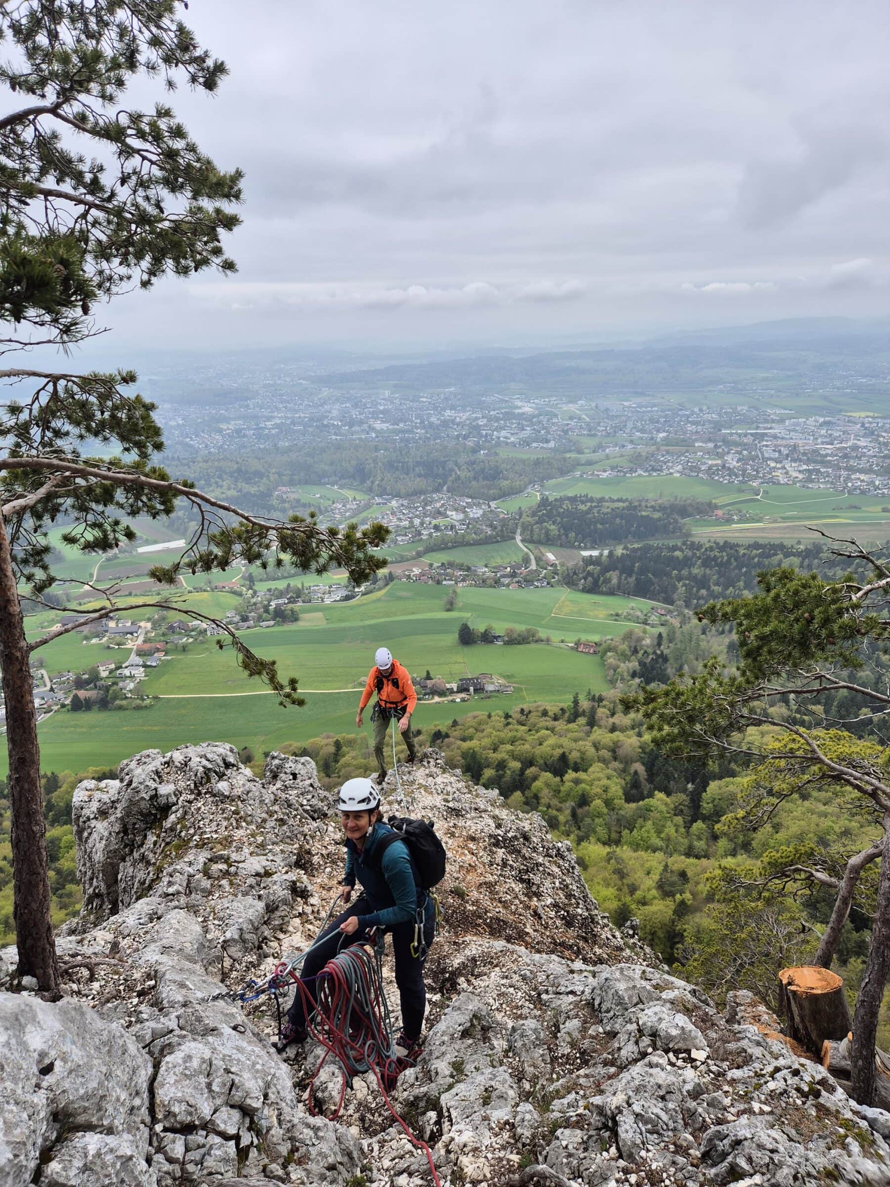 Als wir am Morgen beim Einstieg zum Eulengrat eintrafen, zeigte sich das Wetter von seiner zurückhaltenden Seite: eine geschlossene Wolkendecke lag über dem Jura. Auch die Temperatur war eher kühl und der Fels noch kalt. Doch die Stimmung in der Gruppe liess keinen Zweifel aufkommen: Das wird ein guter Tag. Und tatsächlich: Ausser uns war weit und breit niemand unterwegs – der Grat gehörte an diesem Tag ganz uns allein.
