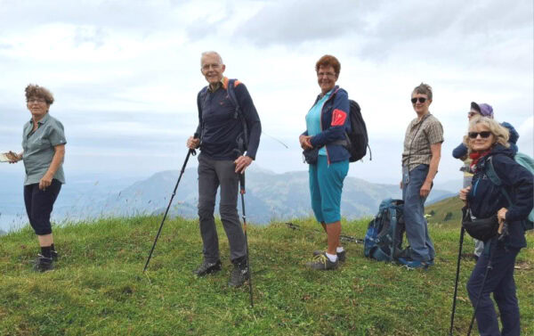 Das Wetter war nicht besonders schön. Daher machten wir die Wanderung in umgekehrter Richtung, von Niederbauen nach Klewenalp. Somit konnte der steile Abstieg vom Faulberg vermieden werden. An mehreren Stellen erfreuten wir uns der tollen Aussicht auf den Vierwaldstättersee. Am Wanderweg gab es einen feinen Ort mit Tischen und Bänken für die Mittagsrast. Beim Aufstieg zur Klewenalp zeigte sich endlich die Sonne. Mit der Seilbahn ging es nach Beckenried hinunter, wo wir uns nochmals in einem Restaurant am See bei guter Stimmung zusammenfanden. Einige Teilnehmer fuhren noch mit dem Schiff nach Luzern.