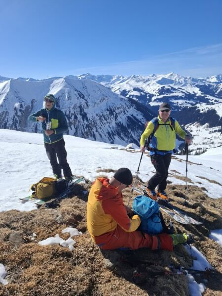 In zwei Gruppen waren wir unterwegs und genossen eine lange Gipfelpause zusammen. Die zum Teil ruppige und spannende Abfahrt wurde super gemeistert und mit Humor genommen. Einige Hindernisse wie fast eingeschneite Wegweiser, verschneite Brunnen oder Bachbette wurden meist gut überwunden. Zum Abschluss wurde in einer geselligen Runde, im Spillgerten angestossen.