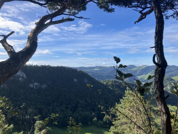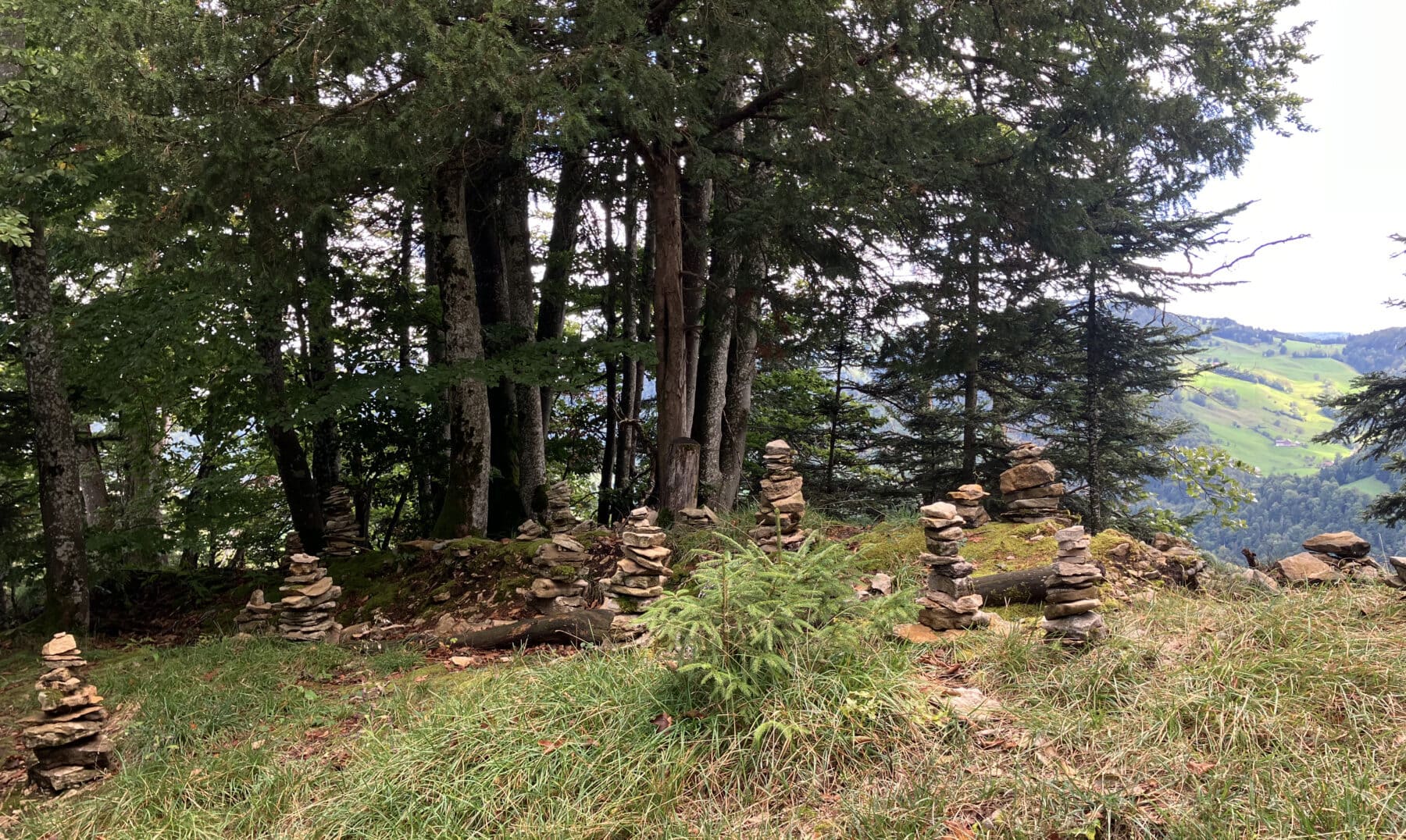 Bei sonnigem Wetter stiegen wir auf gepflegtem Wanderweg zum Restaurant Stierenberg empor. Freundlicherweise liess uns der junge Wirt noch vor der Oeffnungszeit hinein, und die meisten gönnten sich noch einen Kaffee. Die Route führte uns weiter auf den schmalen Ammenegg-Grat. Auf dem Picknick-Platz Nunningerberg nahmen wir das Mittagessen ein. Gestärkt ging es dann steil hinauf zum Grat der Roti Flue. Ein high light war der Anblick der vielen Steinmannli. Auf dem Hirnichopf gönnten wir uns eine Rast und genossen die weite Aussicht. Versehentlich wanderte ich beim Abstieg bei einer Verzweigung in die falsche Richtung. So gab es noch eine Zusatzschlaufe am Hirnihof vorbei. Weiter folgten wir dem Wegweiser Ruine Gilgenberg durch die Ibachschlucht, und schliesslich gelangten wir auf einem schmalen Feldweg nach Nunningen zurück. Diese einzigartige Gratwanderung bei bestem Wetter wird uns noch lange in guter Erinnerung bleiben.