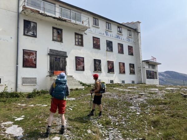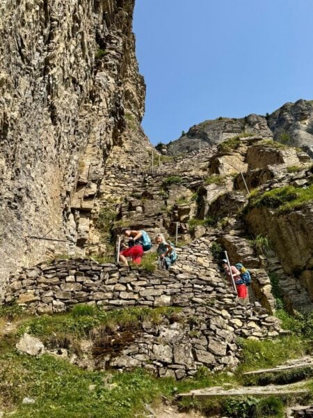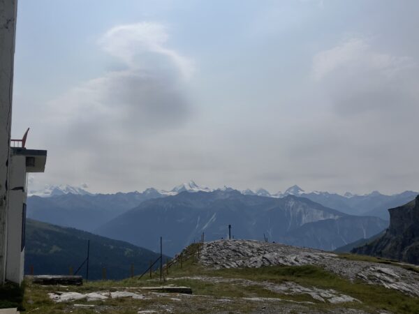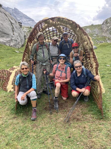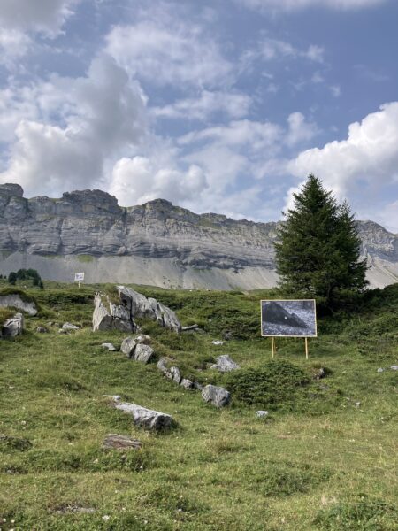 5 Teilnehmende reisten nach Leukerbad an und haben den steilen Aufstieg auf dem Schafweg Richtung Gemmipass unter die Füsse genommen. Die Sonne schien nur milchig, daher perfekte Temperaturen für den Aufstieg. Nach 2,5 Stunden standen wir auf dem Pass und genossen unser Zmittag bei der Hotel-Ruine des Gemmipasses. Dort waren schon die ersten Fotos der Ausstellung zu bestaunen.