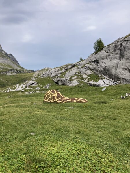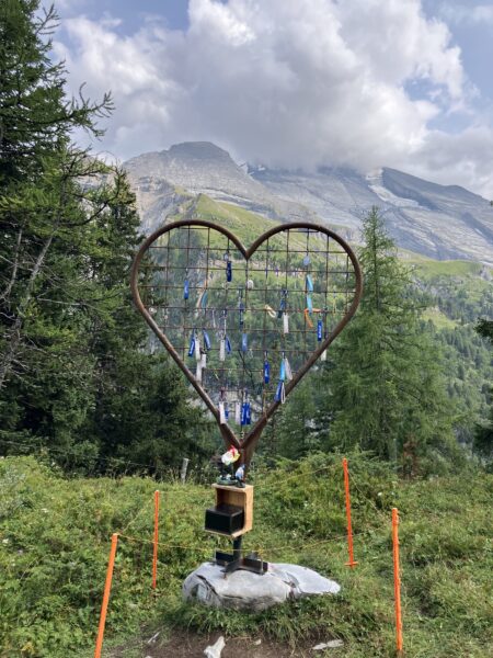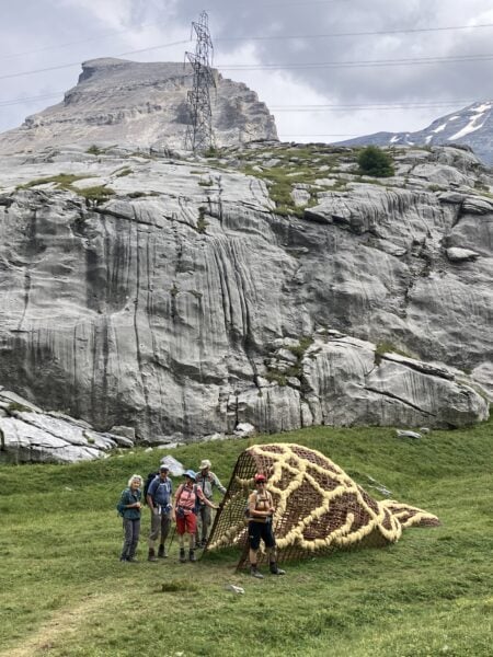 Laut Beschreibung im Kunst-Führer folgte nun ein inspirierender Kunst-Parcours über den Gemmi-Pass, der zum Nachdenken und sinnlichen Erleben einlud. Die Kunst-Objekte sind frei zugänglich und beschäftigen sich auf kreative Weise mit der umliegenden Natur, dem Tourismus und der historischen Bedeutung des Gemmipasses als Alpenübergang.