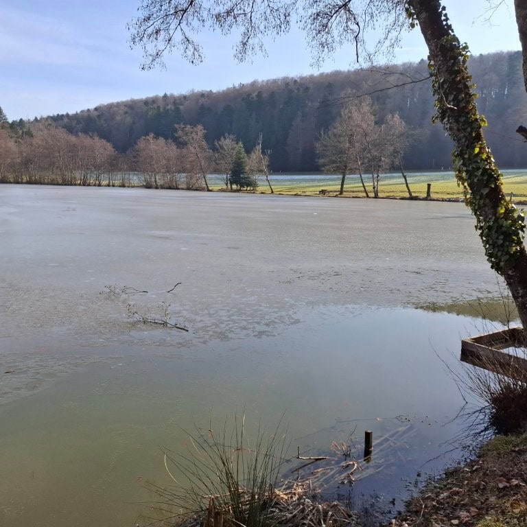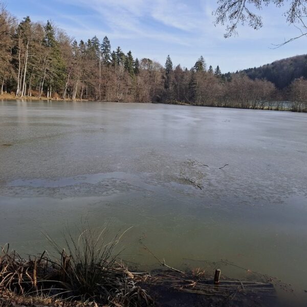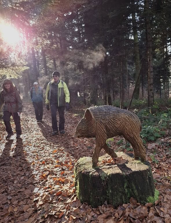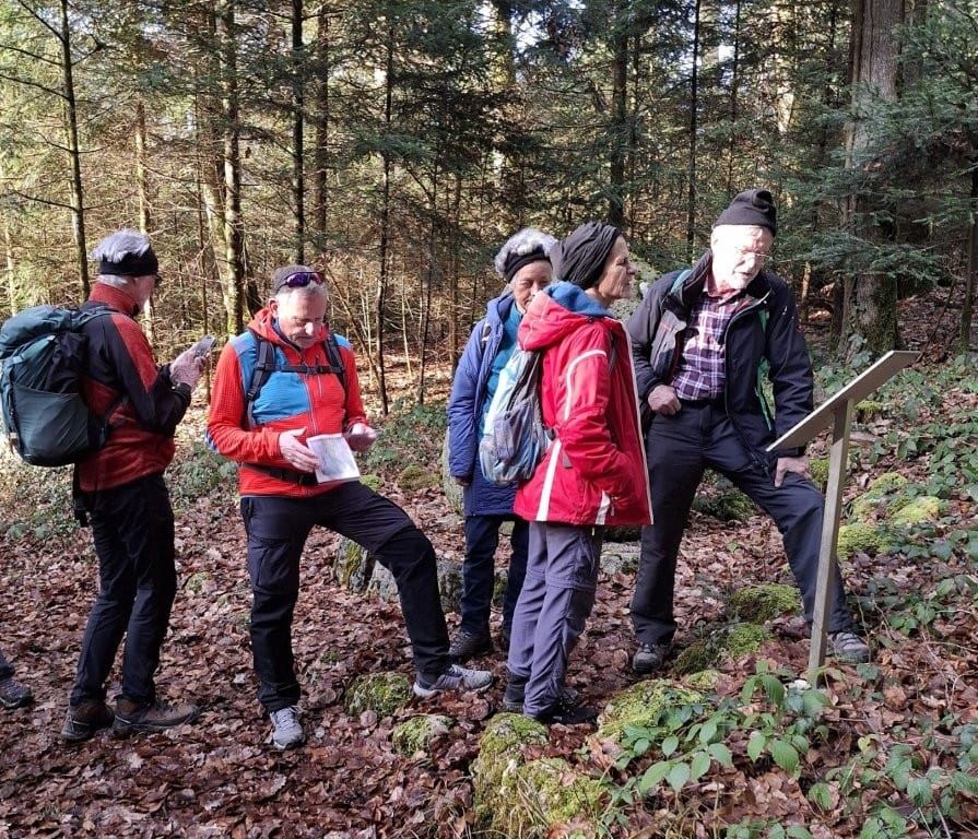 Bei kalten Temperauren starteten wir zu zehnt in Porrentruy. Nach einem kurzen Aufstieg erreichten und wärmten uns bereits die ersten Sonnenstrahlen. Durch einen verzauberten Wald mit vielen Holzskulpturen von Waldtieren und mystischem Anblick der Hochebene zwischen Porrentruy und Alle wanderten wir weiter Richtung Bois Juré und Vendlincourt.