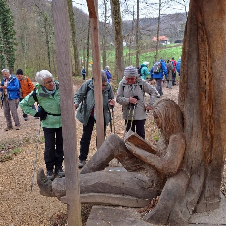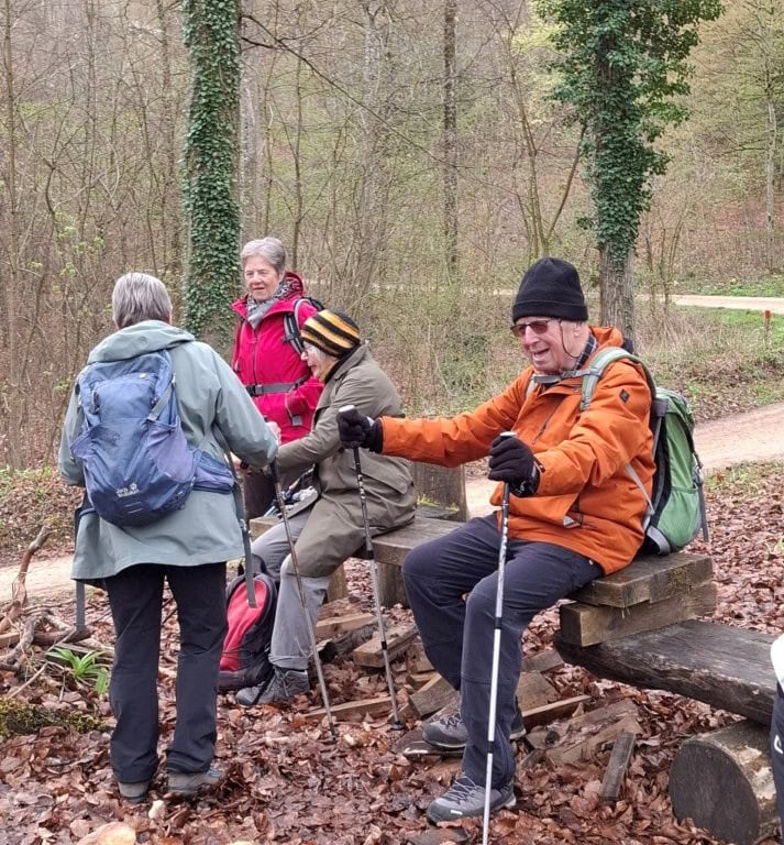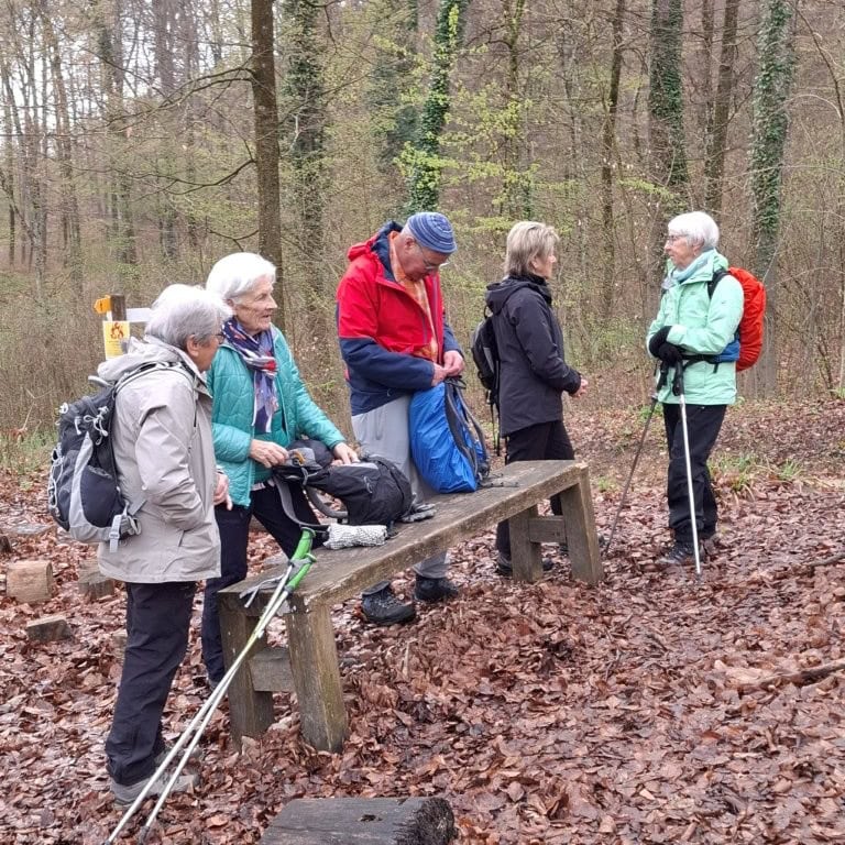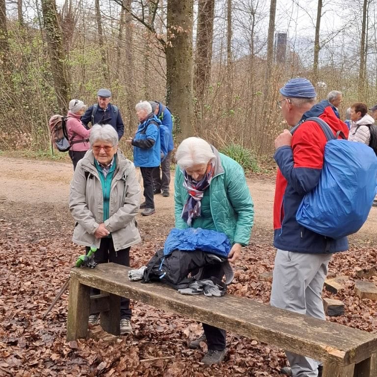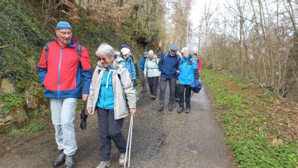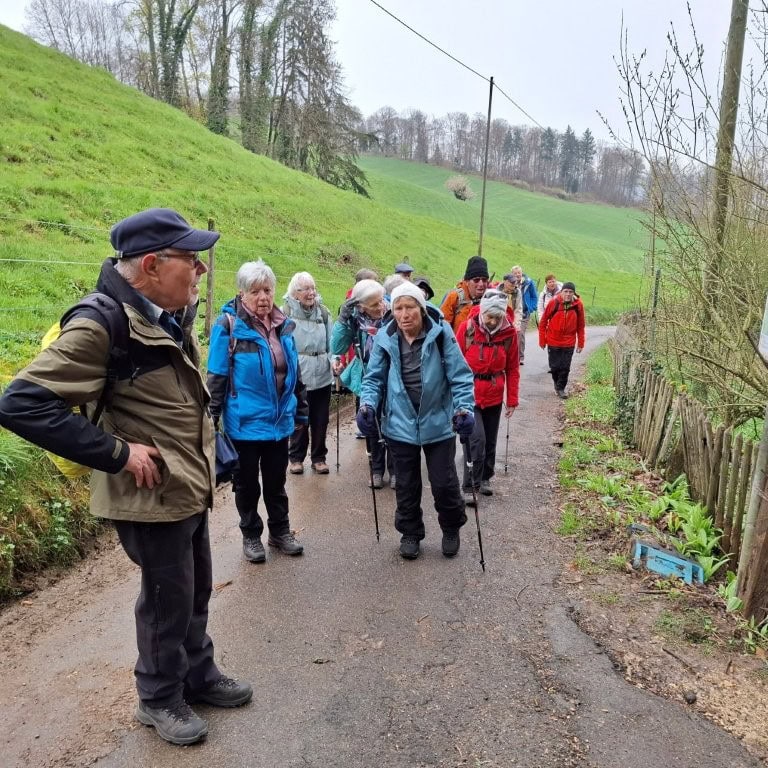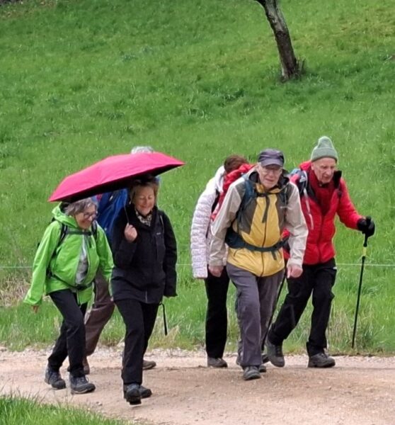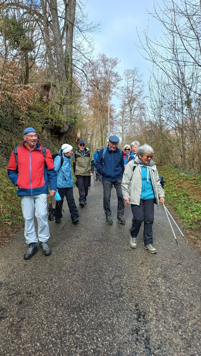 26 Wanderfreudige (Veteranen und ein paar Senioren) vom SAC BL trafen sich beim Bahnhof Pratteln zu meiner 1. Tour bei den Veteranen. Das Wiedersehen machte allen Freude und so machten wir uns auf zur Wanderung, anfangs bei leichtem Regen, durch den Dorfkern, dem Talbach entlang, um die Neu-Schauenburg und schliesslich zum Restaurant Bienenberg, wo uns ein schön gedeckter Tisch, aufgestelltes Personal und 2 feine Menüs zur Auswahl erwarteten. Mit einer prächtigen Aussicht über das Ergolztal Richtung Schwarzwald konnten wir unser Essen geniessen.