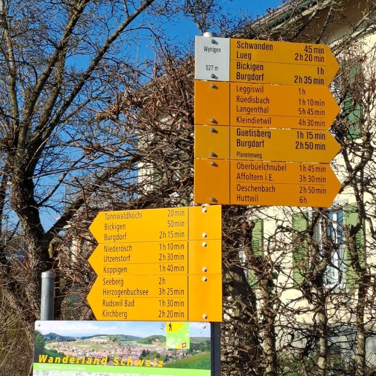 Ein Stück weit geht’s wir wieder zum Oberbühlknubel hinauf, bis wir uns gegen den Weiler Oberbühl wenden können. Alles dem Wanderweg folgend gelangen wir via Leggiswil schliesslich nach Wynigen hinunter, von wo aus wir die Rückreise antreten.