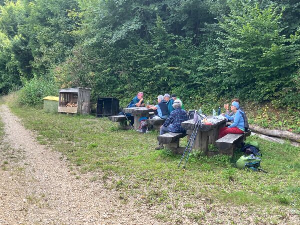 Nach Känerkinden ging es nochmals steil bergauf zum schönen Rastplatz über dem Hof Riedmatt.