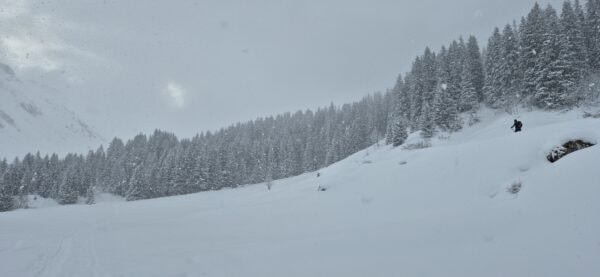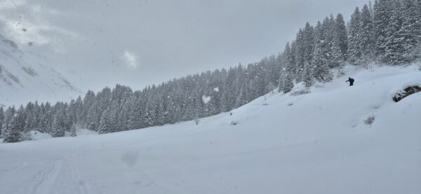 Mehr Neuschnee und zunehmende Gefahr zwangen uns, verschiedene Szenarien durchzuspielen. Am Morgen bestätigte sich die Vorhersage: Rund 30 cm Neuschnee. Die Betreiber in Partnun informierten uns zudem über ihre Absicht, das Tal im Verlauf des Morgens für Wintersportler zu sperren, da weiterer Schneefall erwartet wurde. So entschied die Gruppe, dass wir das Tal verlassen und leider die Tour abbrechen.