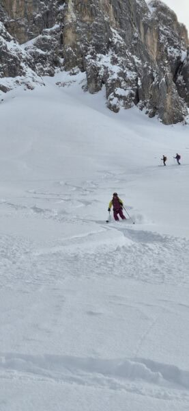Mit einem Schneeprofiel im Gelände, konnten wir die aktuelle Situation vor Ort noch besser einschätzten und die Altschneeproblematik genau erkennen. Die zusätzliche Anstrengung wurde mit schönen Schwüngen belohnt ein rundum gelungener Tourentag.