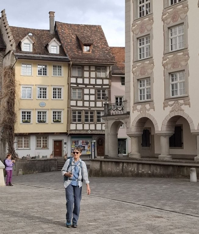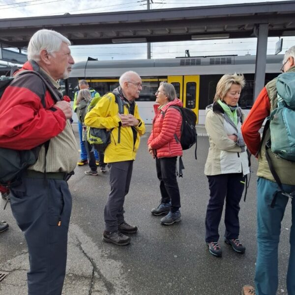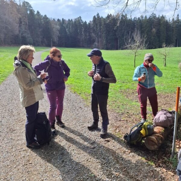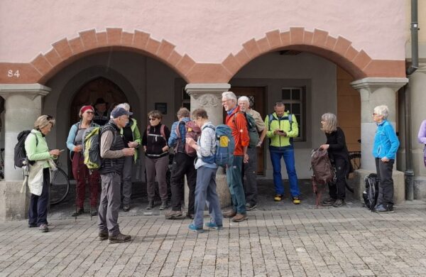 Nach dem Mittagessen machen wir uns auf den Weg in Richtung Wil SG, diesmal auf der Originalroute des Thurgauer Panoramaweges. Durch das romantische Hagenbuchtobel und nach einem Anstieg erreichen wir den Weiler Hölzli. Hier machen wir einen Trinkhalt und geniessen nochmals die Aussicht in Richtung Toggenburg. Über den Nieselberg erreichen wir die Stadt Wil SG, das durch seine Grösse überrascht. Wil SG ist die drittgrösste Stadt des Kantons mit 25’000 Einwohnern. Durch die malerische Altstadt und die Einkaufsstrasse erreichen wir den Bahnhof Wil, wo wir den Zug zurück ins Baselbiet nehmen.