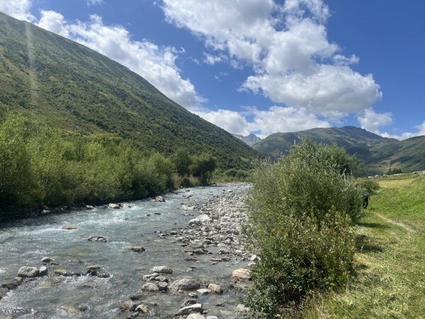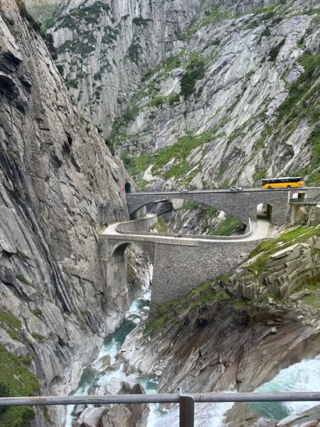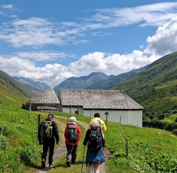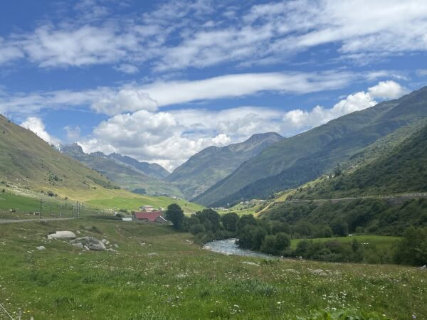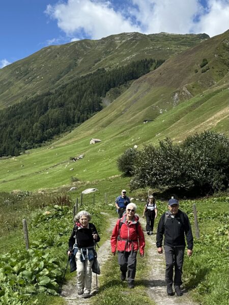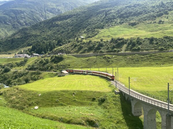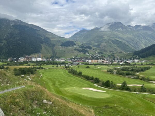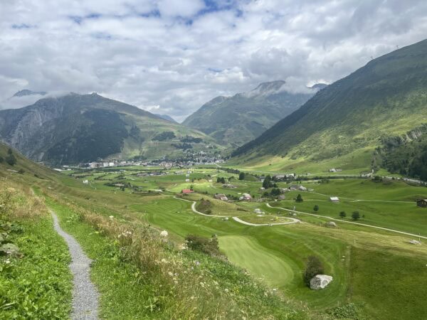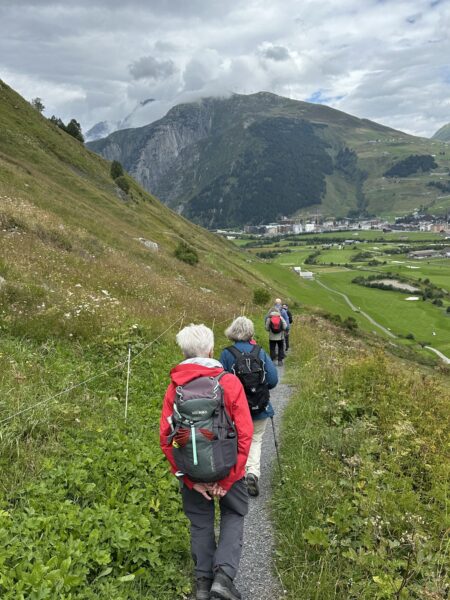 Nach einer langen Zugreise erreichen wir bei guten Wetterverhältnissen Realp zuhinterst im Urserental. Die Sonne zeigt sich vorsichtig, es geht aber ein zügiger, kühler Wind wie häufig hier. Wir machen uns auf zur Wanderung in Richtung Hospental, immer mehr oder weniger der Reuss entlang. Kurz vor dem kleinsten Dorf der Schweiz mit dem Namen Zumdorf (ein Restaurant und eine Kapelle) machen wir einen Trinkhalt. Vorbei am riesigen Kies- und Betonwerk bei Zumdorf geht es weiter der Bahnlinie entlang talauswärts. Bei einem Bauernhof oberhalb Hospental beginnt die einzige grössere Steigung. Auf der Höhe stehen wir am Ende des Golfplatzes von Andermatt. Die Aussicht von hier ist imposant, zu Füssen der Golfplatz und im Hintergrund das alte und das neue Andermatt/Reussen. Hier verzehren wir unser Picknick. Von hier führt der Weg gemütlich abwärts in Richtung Andermatt, zu Füssen immer der grosse Golfplatz. In Andermatt angekommen besichtigen wir das neue Andermatt mit mittlerweile über 30 Apartment Häusern. Sieben Baukräne und drei Häuser im Bau zeigen deutlich, dass das Projekt von Investor Sawiris noch lange nicht beendet ist. In einem Restaurant auf dem neuen Hauptplatz des Resorts machen wir zum Schluss eine Pause bei Kaffee und Kuchen, bevor wir den kurzen Weg zum Bahnhof unter die Füsse nehmen.